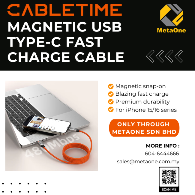 🚀 Now Available in Malaysia: CableTime Fast Charge Cable – Officially Distributed by MetaOne Sdn Bhd! ⚡