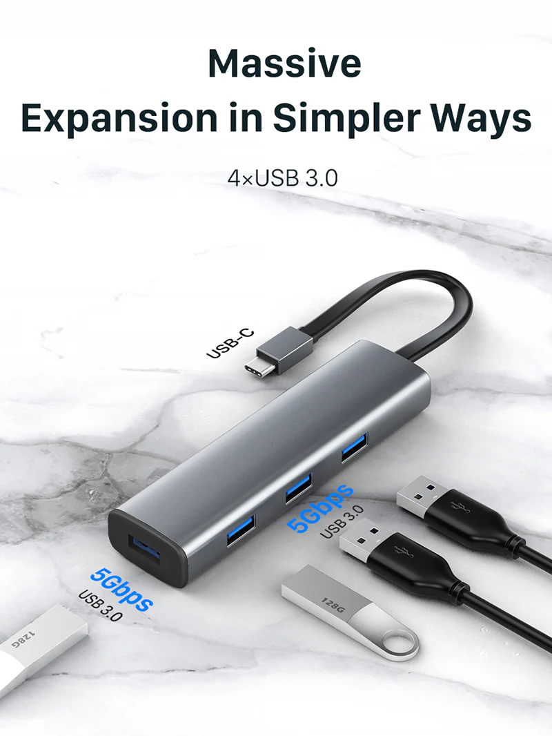 Cabletime Portable Slim 4 In 1 USB 3.0 Type C Multiport Adapter