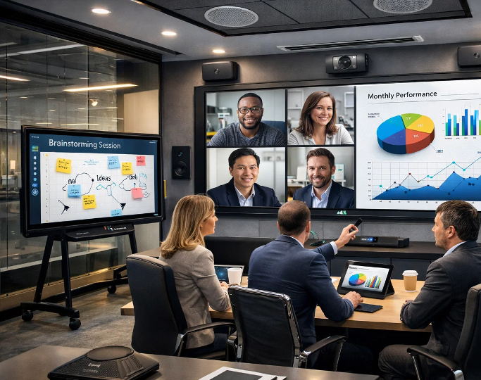Professional end-to-end audio-video and IT integration services for modern collaboration spaces. From interactive displays to advanced audio systems, we bring your meeting spaces to life. Our solutions enhance collaboration and productivity while impressing clients and employees with a sleek, modern, and professional environment